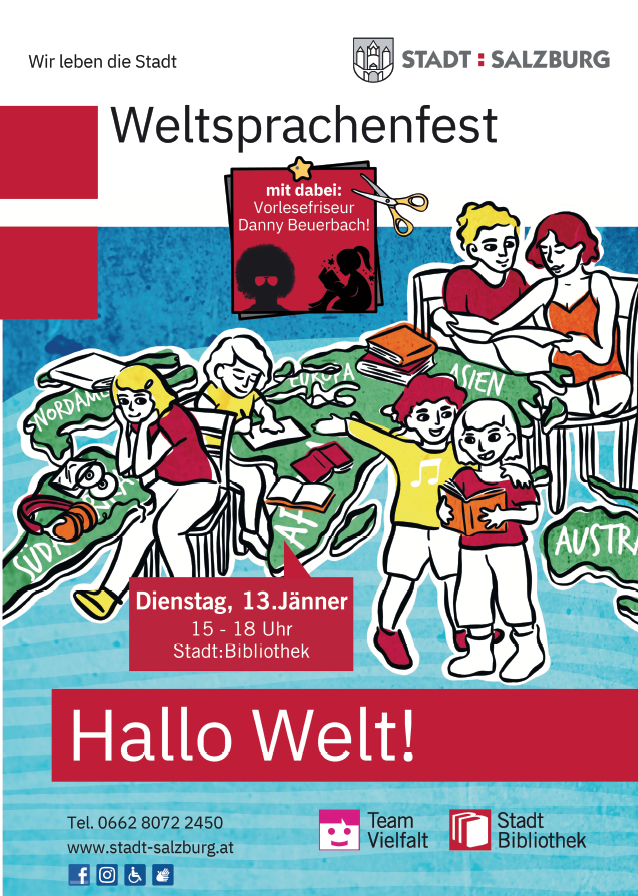 Am 13. Jänner 2026 lädt die Stadt:Bibliothek Salzburg zum Weltsprachenfest ein – einem Nachmittag, der Sprachen, Kulturen und Begegnungen in den Mittelpunkt stellt. Nach dem großen Besucherinteresse der letzten Ausgabe erwartet die Gäste auch diesmal ein vielfältiges Programm für alle Generationen.
